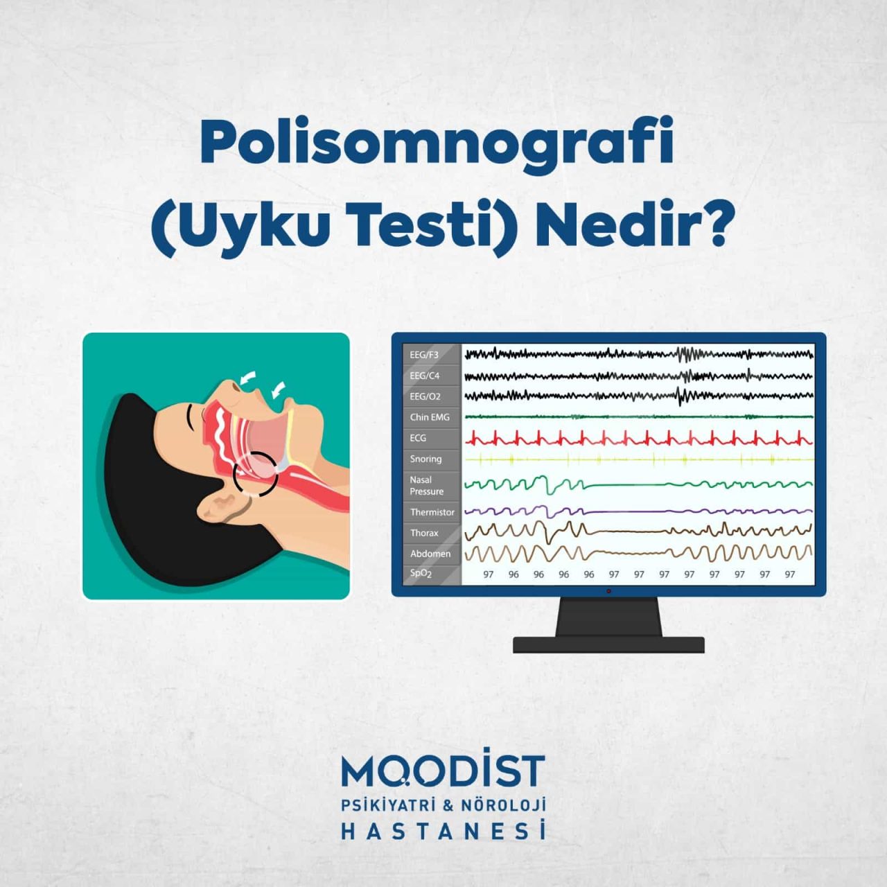 Moodist Hastanesi Uyku Laboratuvarı birimimizde, uzman hekimlerimiz, uyku şikayetleri ve yaşadığı sorunlar hakkında kişi ve yakınları ile konuşarak gerekli tetkikleri, incelemeyi ve muayenesini yapar.